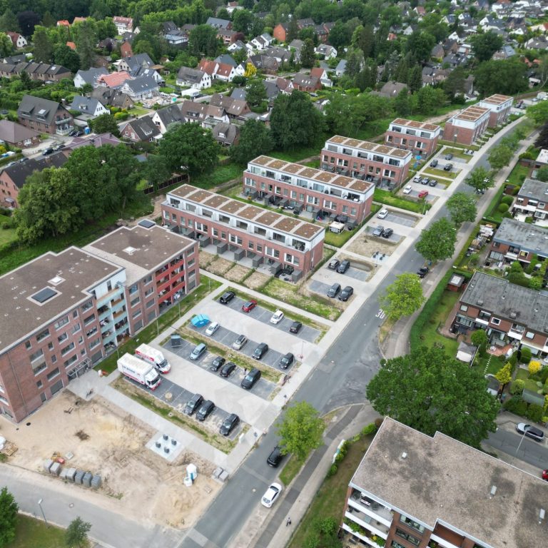 Das Wohnungsunternehmen Semmelhaack hat auf einer alten Gleisanlage 30 Reihenhäuser und 2 Mehrfamilienhäuser errichtet. Auch hier waren wir, für die Entwässerungsarbeiten und Oberflächen des Wohnquartiers verantwortlich. Die Grünanlagen und Spielplätze wurden ebenfalls durch uns und unsere Partner errichtet.